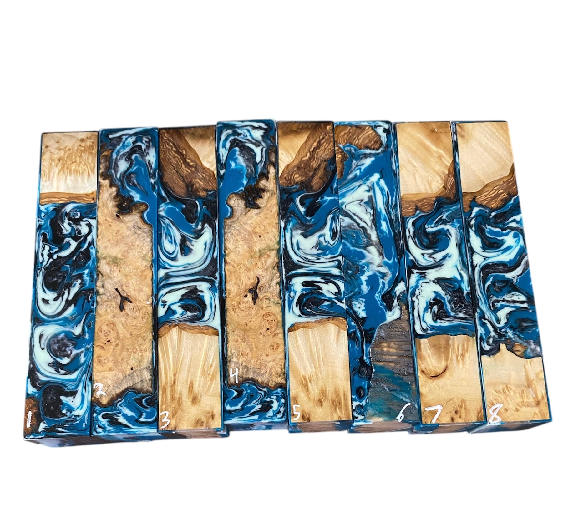 Made from stabilized boxelder burl, urethane resin and high quality pigments, pressure cast to 60psi